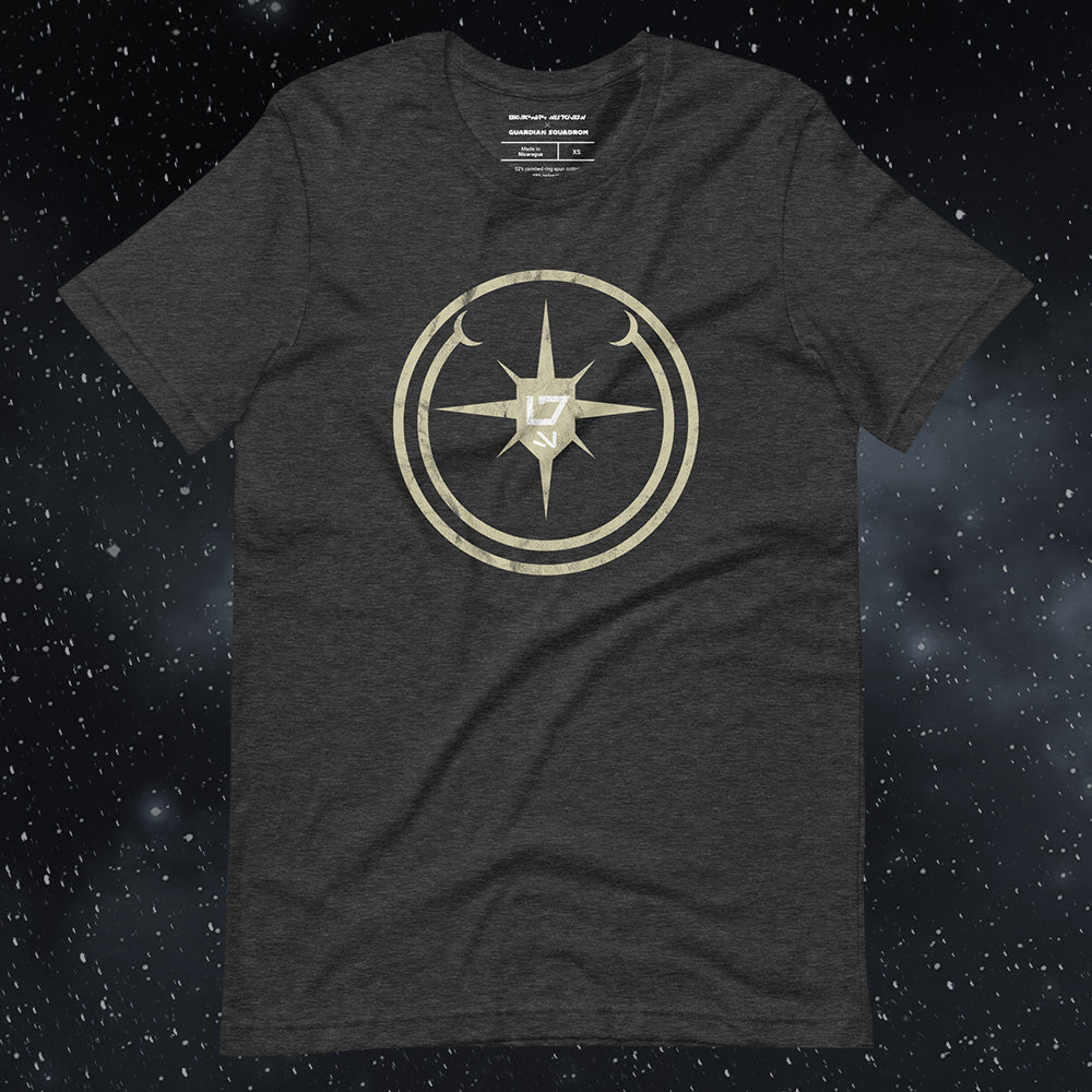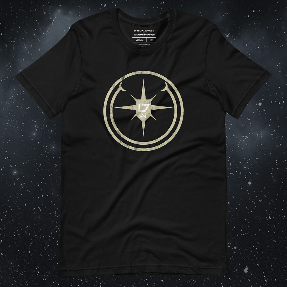Standard issue Guardian Squadron shirt. Complete with white and gold logo on the front. Custom inside print. Available exclusively at Galactic Surplus Co.