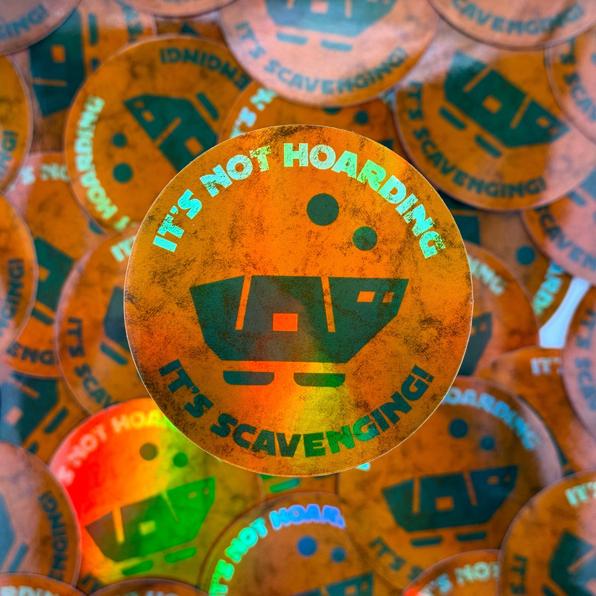 It's not hoarding... its scavenging! a 3" round holographic sticker. Perfect for your datapad, speeder bike, scomp computer etc... Because we all know its not a problem, its an obsession!